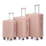 Modern Appearance: The stylish and smooth vertical stripe design of the rolling luggage makes it more resistant to pressure and wear and brings a good mood to your journey. It includes four molded side feet; they allow the luggage to remain upright even when standing on its side.