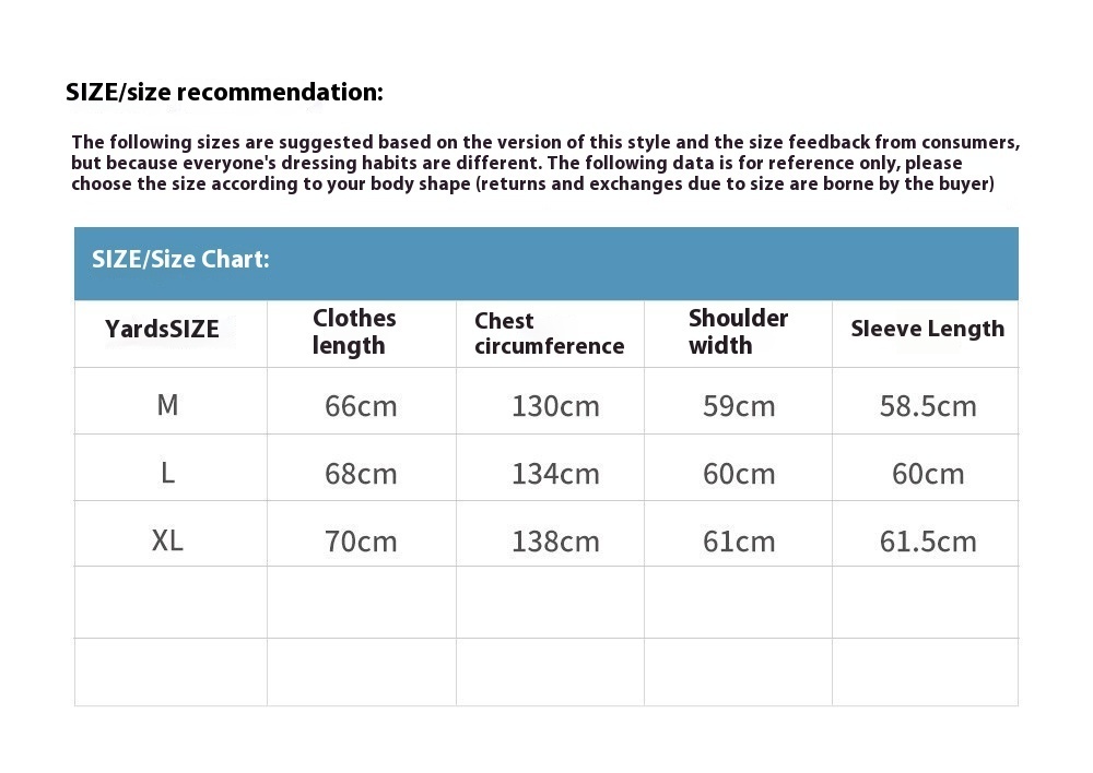 | Size | L, M, XL, XXL |