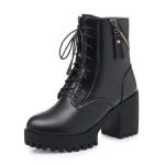 Package List: A pair of slippers | Product information:Lining material: Cotton Color: Black, Brown Heel height: heel (above 8 cm) Heel shape: short stout heel Size: 34,35,36,37,38,39, Order 40, order 41, order 42, order 43 Toe holder shape: round head Shoe Upper material: artificial Pu Wearing method: side zipper Applicable Gender: Female Applicable age: Adult Package List: Boots * 1 pair |