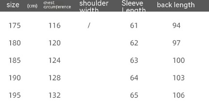 Size: 175,180,185,190,195